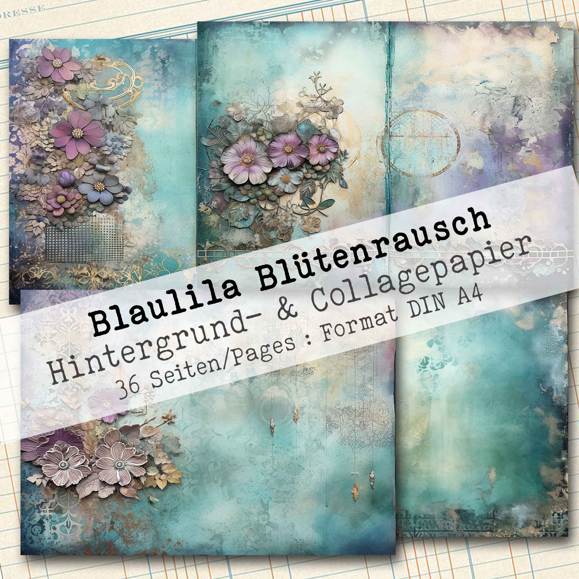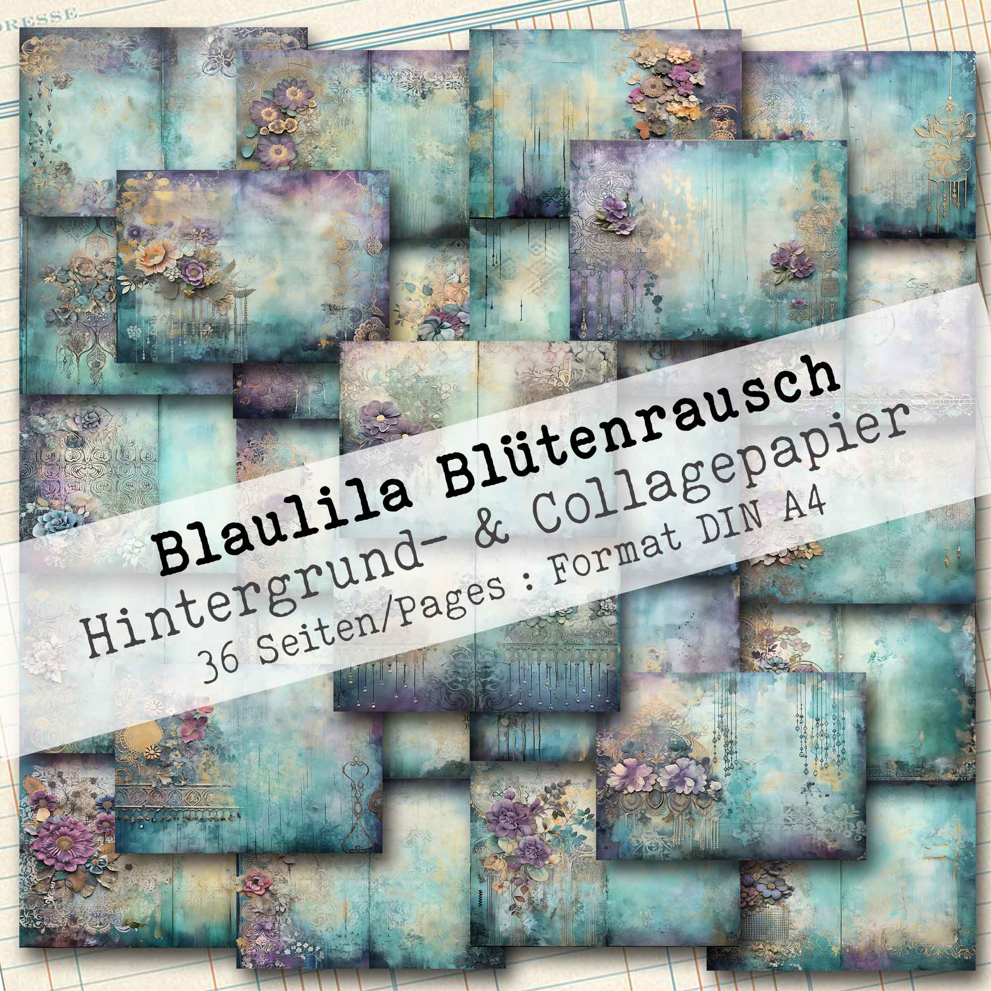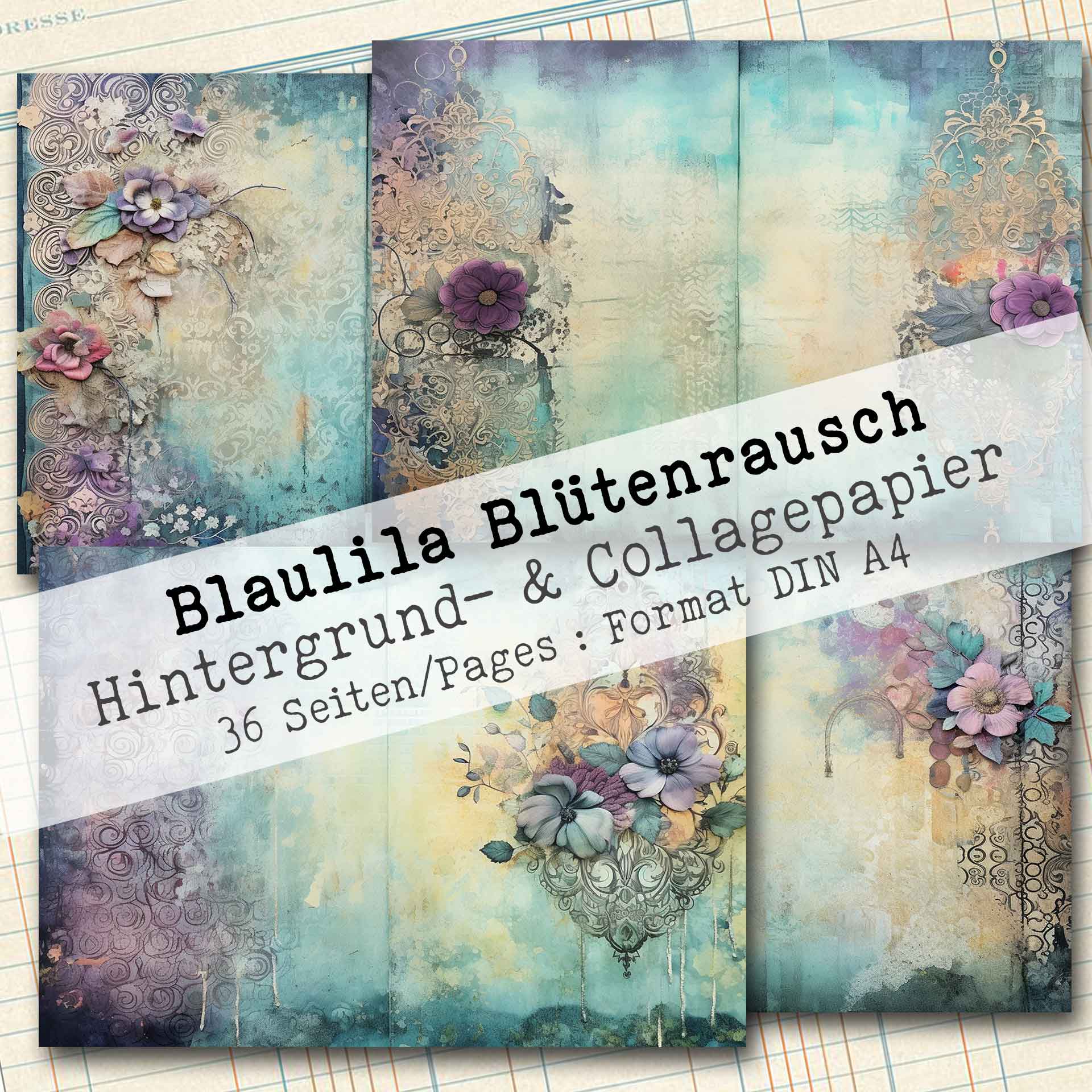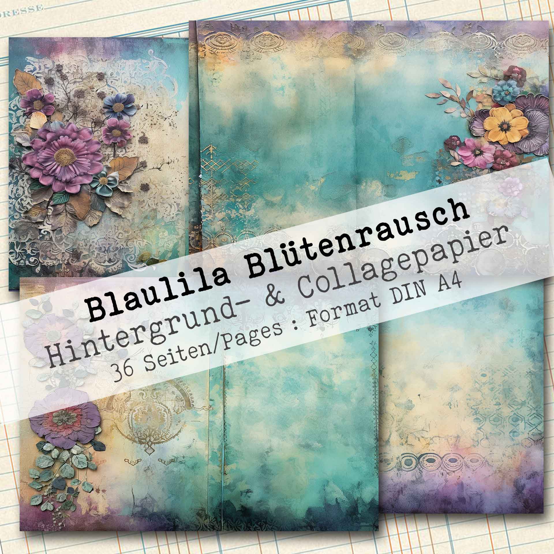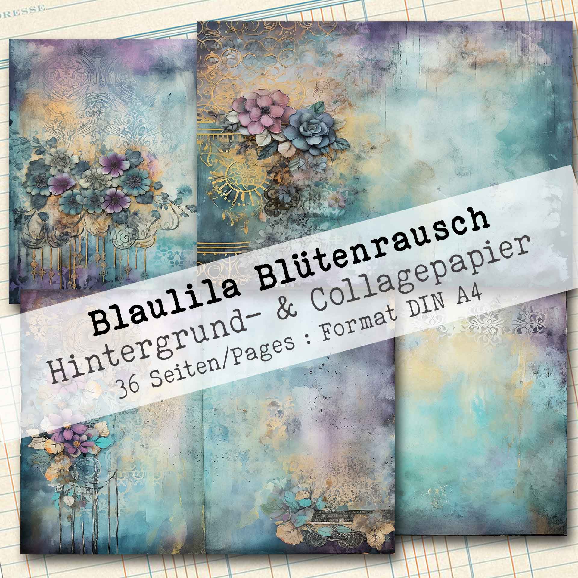 Blaulila Blütenrausch, Hintergrund- & Collagepapier, 36 Seiten