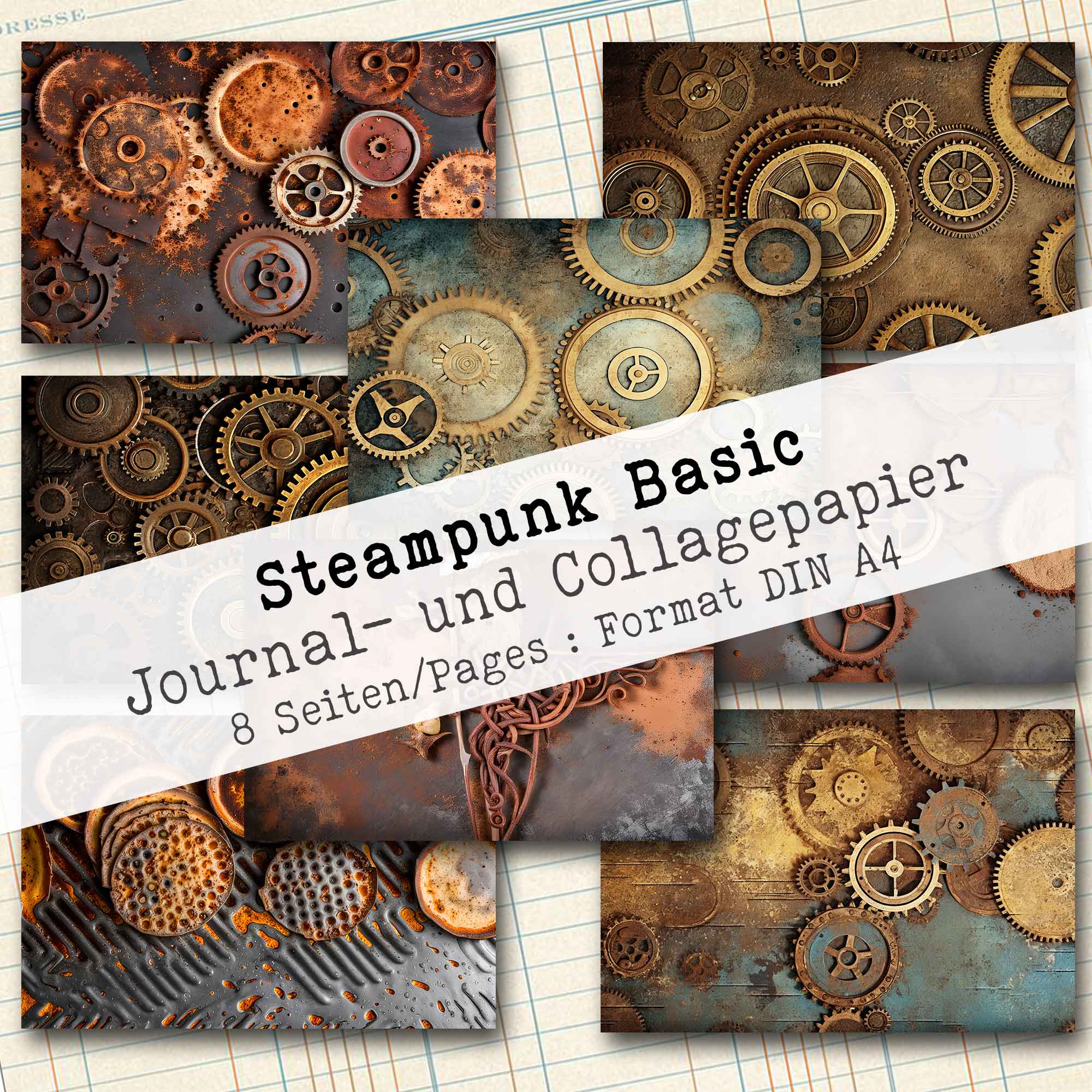 Steampunk Basic, Journal- & Collagepapier, 8 Seiten